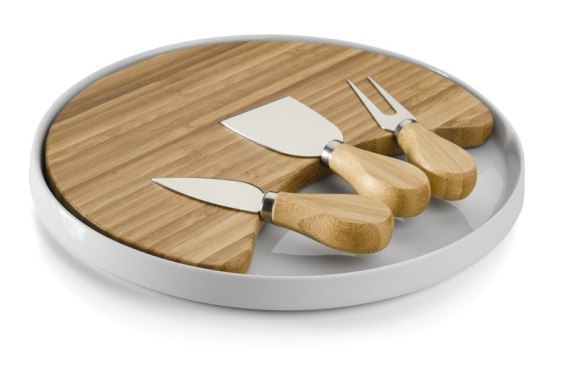 Deska do serów CHEDDAR jest gustownym zestawem do serwowania serów. CHEDDAR jest niezbędnym elementem podczas spotkań przy winie. W zestawie bambusowa deska, ceramiczna podstawka oraz trzy nożyki.