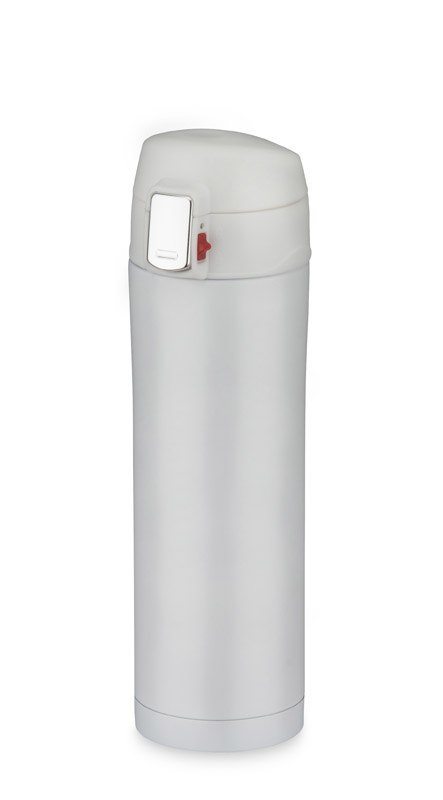 Kubek termiczny LOCK MAT o pojemności 440 ml to niezawodny towarzysz w podróży i w biurze. Dzięki podwójnej ściance z izolacją próżniową utrzymuje temperaturę napojów przez długi czas, a zewnętrzna powierzchnia nie nagrzewa się, chroniąc dłonie przed oparzeniem. Pokrywka typu flip-top z klapką otwieraną od góry pozwala na wygodne picie i szczelne zamknięcie - kubek nie przecieka nawet w torbie. Mechanizm otwierania „naciśnij" ułatwia obsługę jedną ręką. Matowe wykończenie nadaje mu nowoczesny wygląd, a nowe kolory sprawiają, że łatwo dopasować go do identyfikacji wizualnej marki. Kubek można oznakować logo, poprzez grawer lub nadruk.