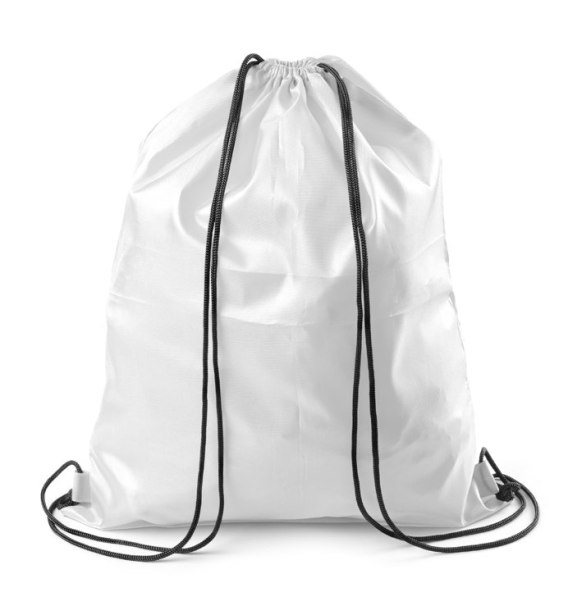Wykonany z poliestru 210D użyteczny worek. Aby go zamknąć wystarczy pociągnąć z sznurki. Logo naniesiemy metodą sitodruku. Maksymalna wytrzymałość worka ok 2 kg.