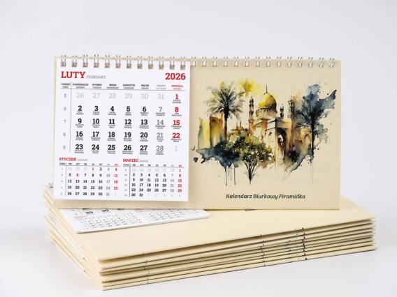 Kalendarze biurkowe piramidki spiralowane to produkt niezbędny w każdym biurze. Kalendarz wyposażony jest w 3-miesięczne kalendaria, przewracane na spirali. Podstawa kalendarza zadrukowana jest wg dowolnego projektu.
