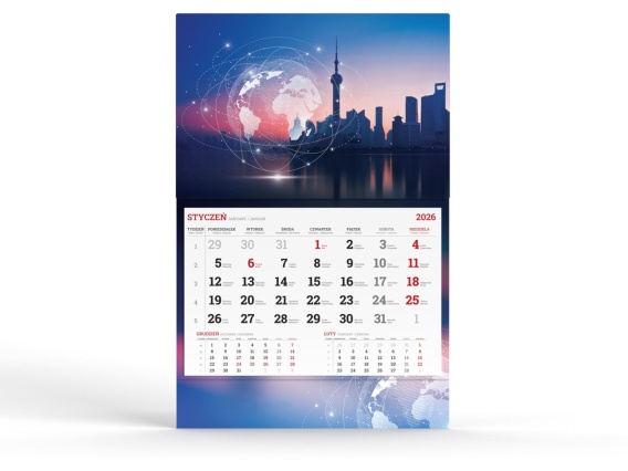 Kalendarz firmowy jednodzielny składa się z bigowanego w dwóch miejscach kartonu - plecków oraz główki. Zarówno plecki, jak i główna zadrukowywane są w pełnym kolorze. Plecki wyposażone są w 1-miesięczne kalendarium wraz z okienkiem.
