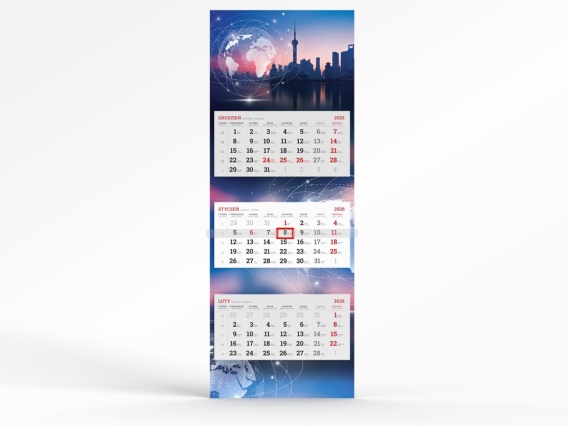 Kalendarz trójdzielny z płaską wypukłą wykonany jest na wysokiej jakości kartonie o gramaturze 250g. Wykonamy na nim dowolny zadruk zarówno główki, jak i plecków. Kalendarz możemy uszlachetnić folią błysk, mat, soft touch lub dodatkowo wybiórczo lakierem UV.