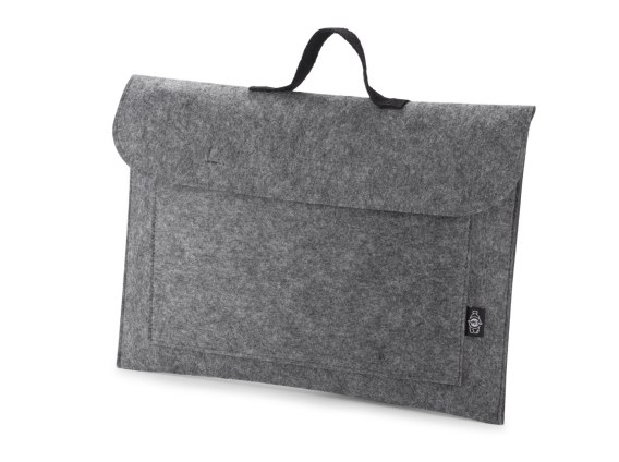 Stylowe etui na laptop TARO wykonane z recyklingowanego filcu rPET. Etui jest poręczne i lekkie mieszczące laptop 15". Dodatkowa kieszeń umożliwia przechowywanie dokumantów, czy drobiazgów. Uchwyt ułatwia wygodne przenoszenie. Zamykane na rzep.