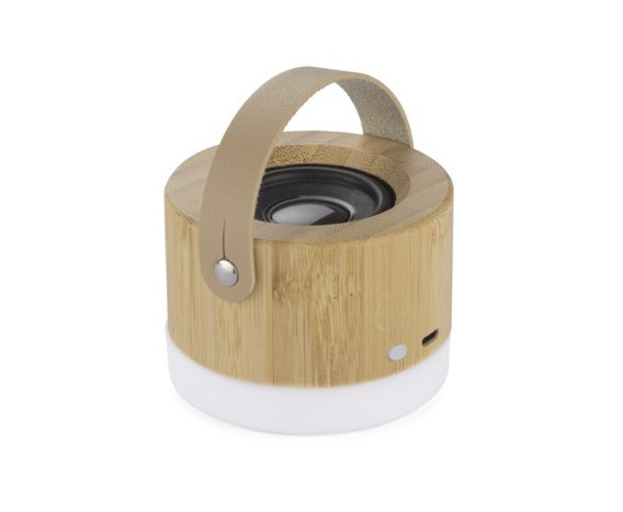 RORAT to wielofunkcyjny i designerski głośnik. Wykonany z bambusa tworzywa z wygodnym paskiem z ekoskóry, który pozwala go używać w każdych warunkach. Wbudowana na spodzie lampka zmienia urządzenie w ciekawą ozdobę jaki i zapewnia światło np. pod namiotem. Odtwarzanie muzyki za pośrednictwem bluetooth (wersja 5.0). Produkt jest zgodny z odpowiednimi dyrektywami Unii Europejskiej oraz posiada znak CE.