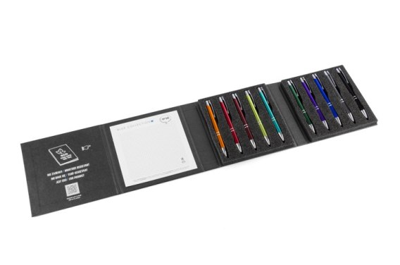 Będzie idealnym materiałem do prezentacji, dzięki umieszczonemu wewnątrz notesowi z papieru kamiennego da możliwość jednoczesnego przetestowania długopisów.