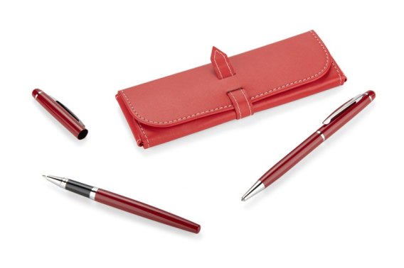 Elegancki zestaw piśmienniczy pakowany w etui z materiału skóropodobnego (PU). W zestawie znajdują się długopis oraz pióro kulkowe. Logo wygrawerujemy na powierzchni artykułów piśmienniczych.